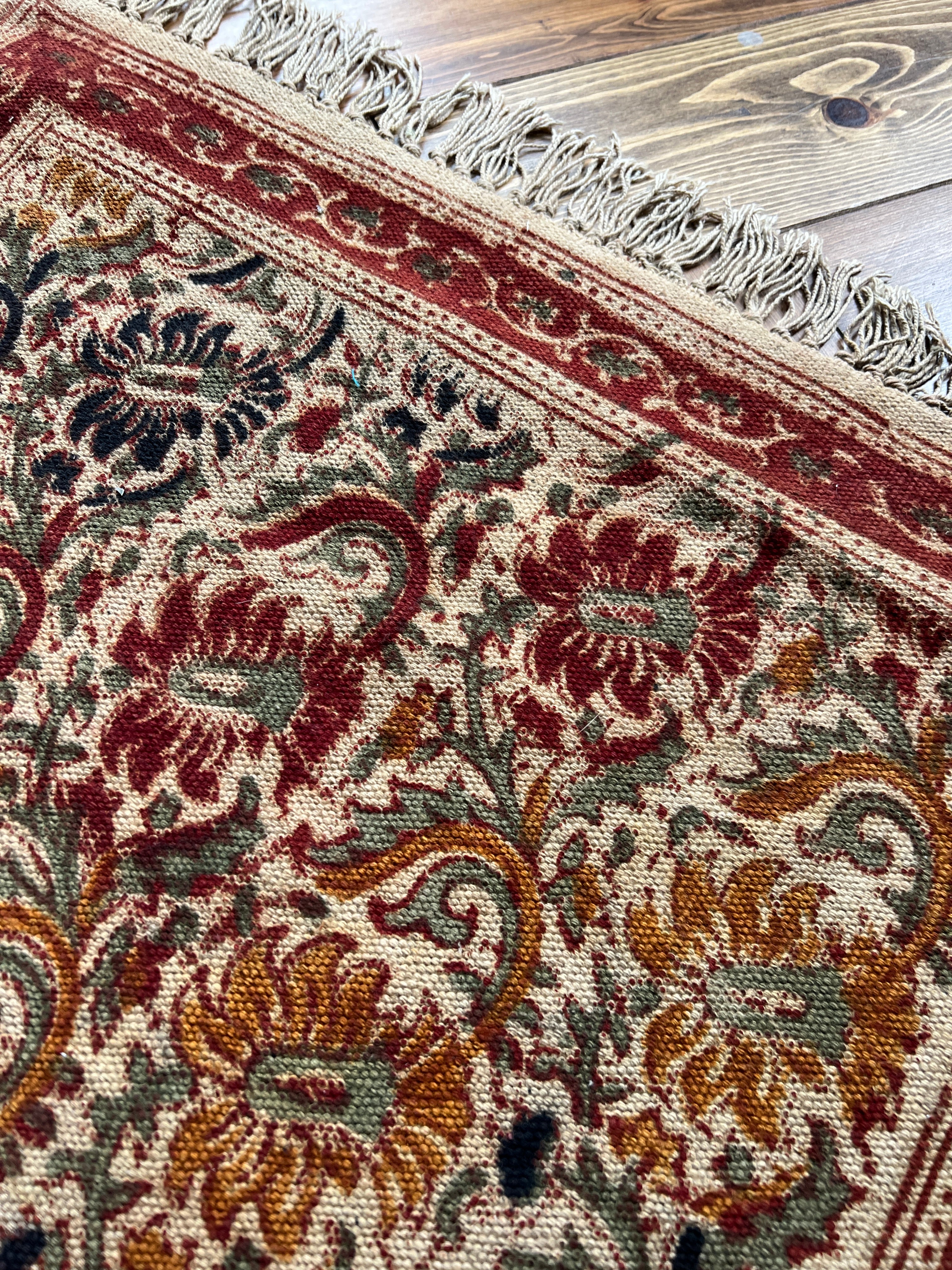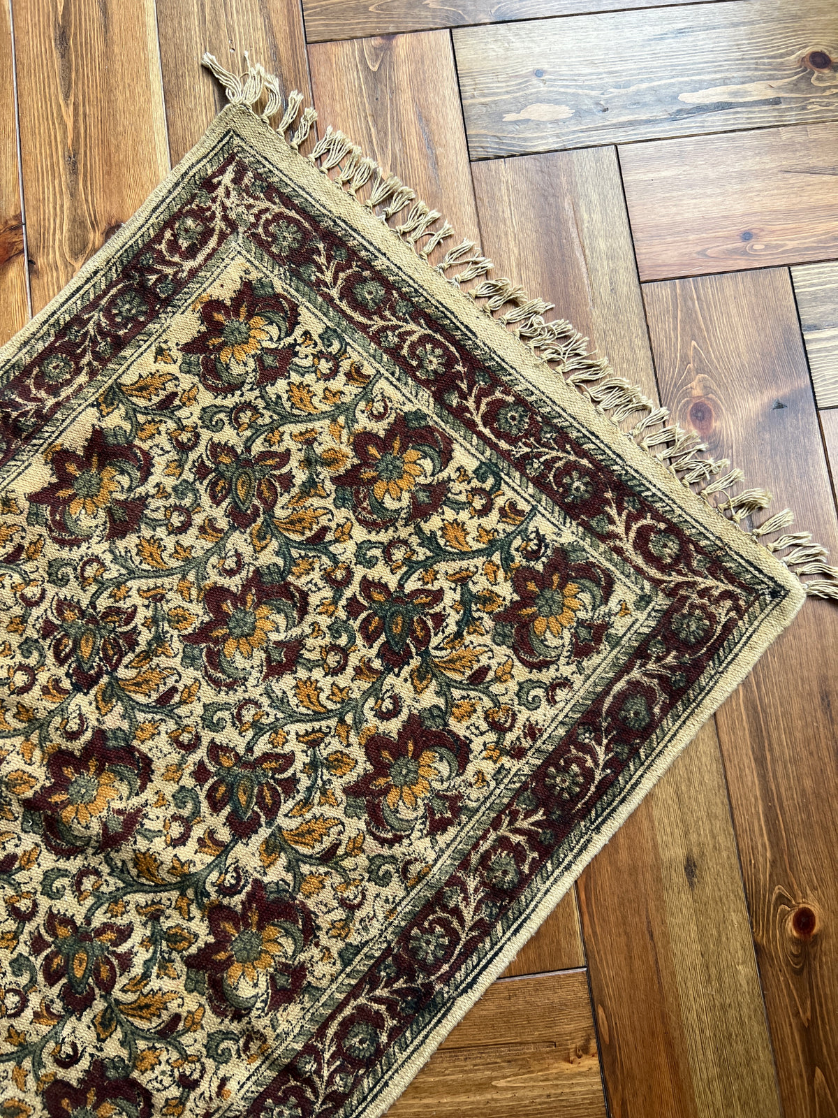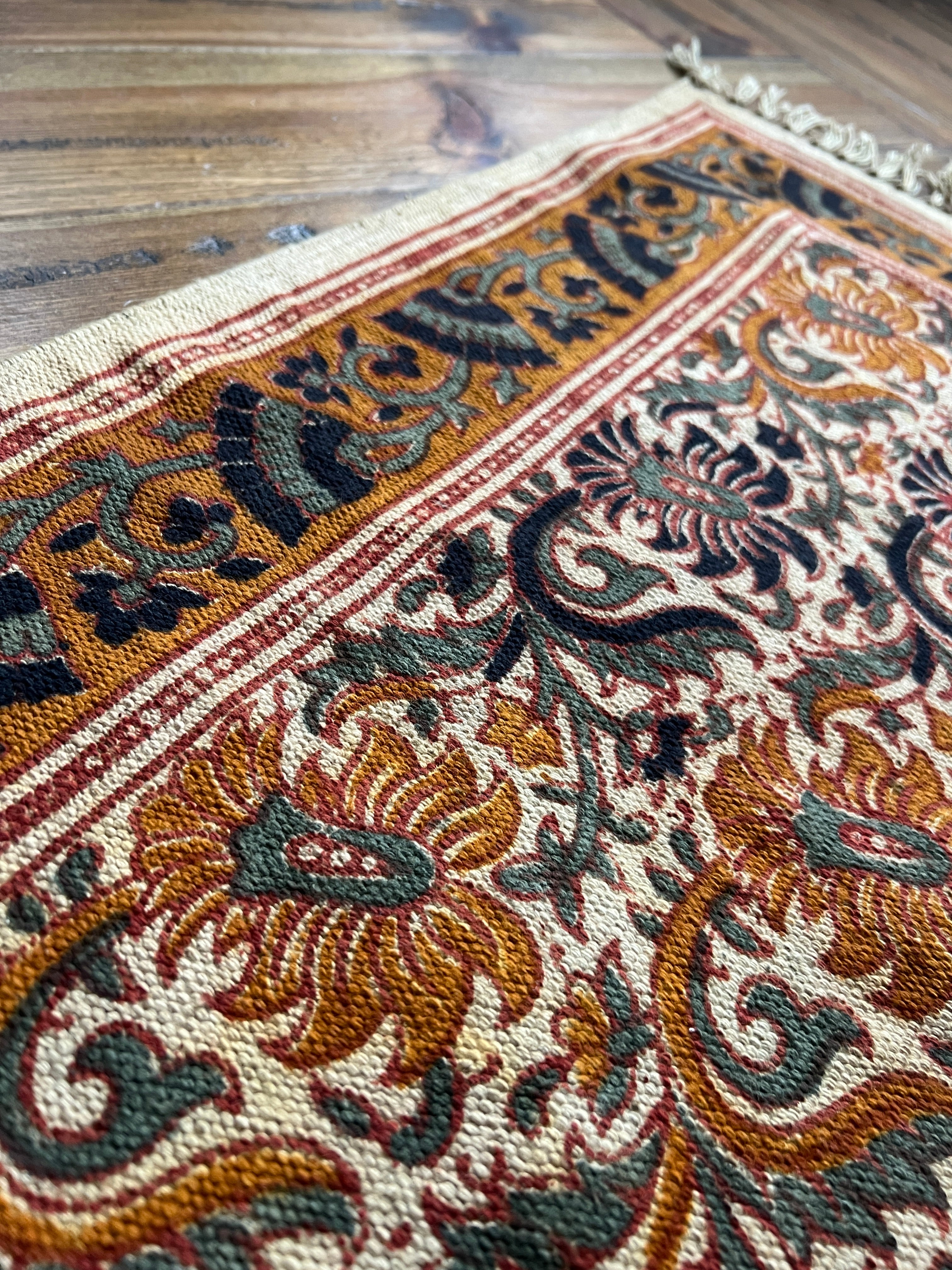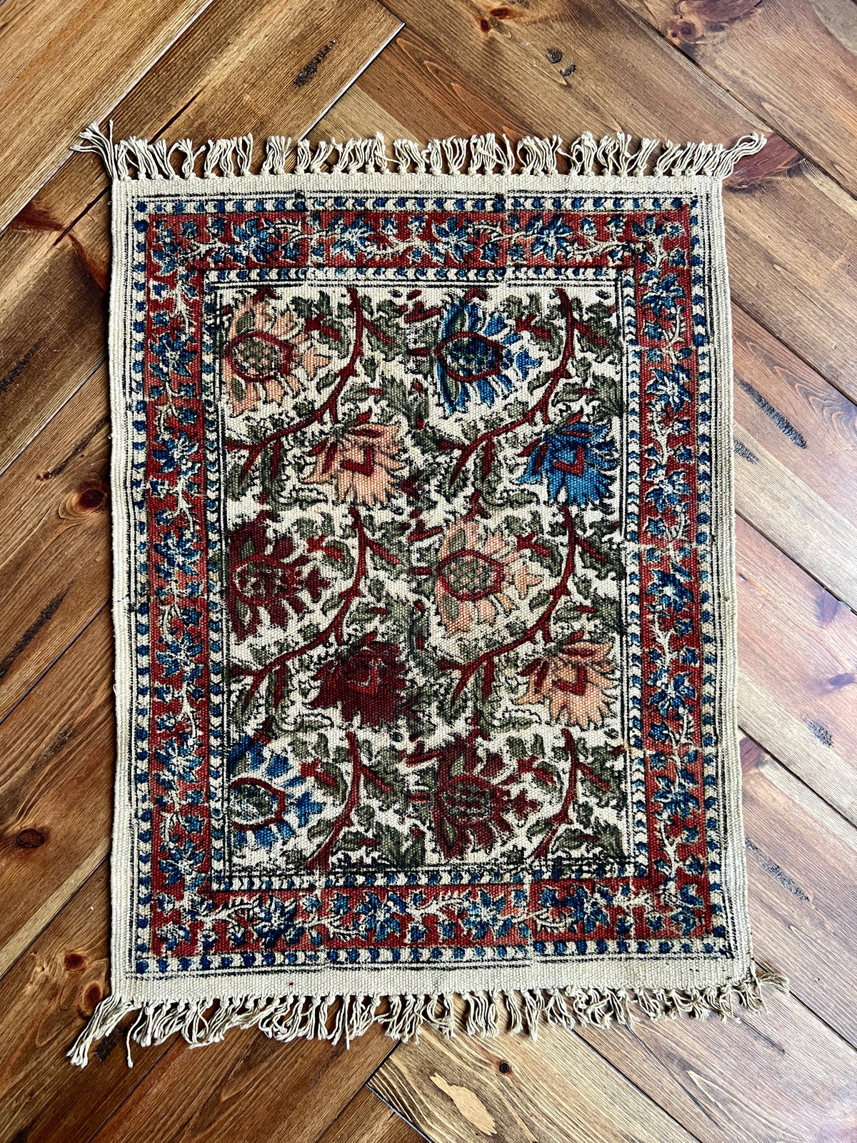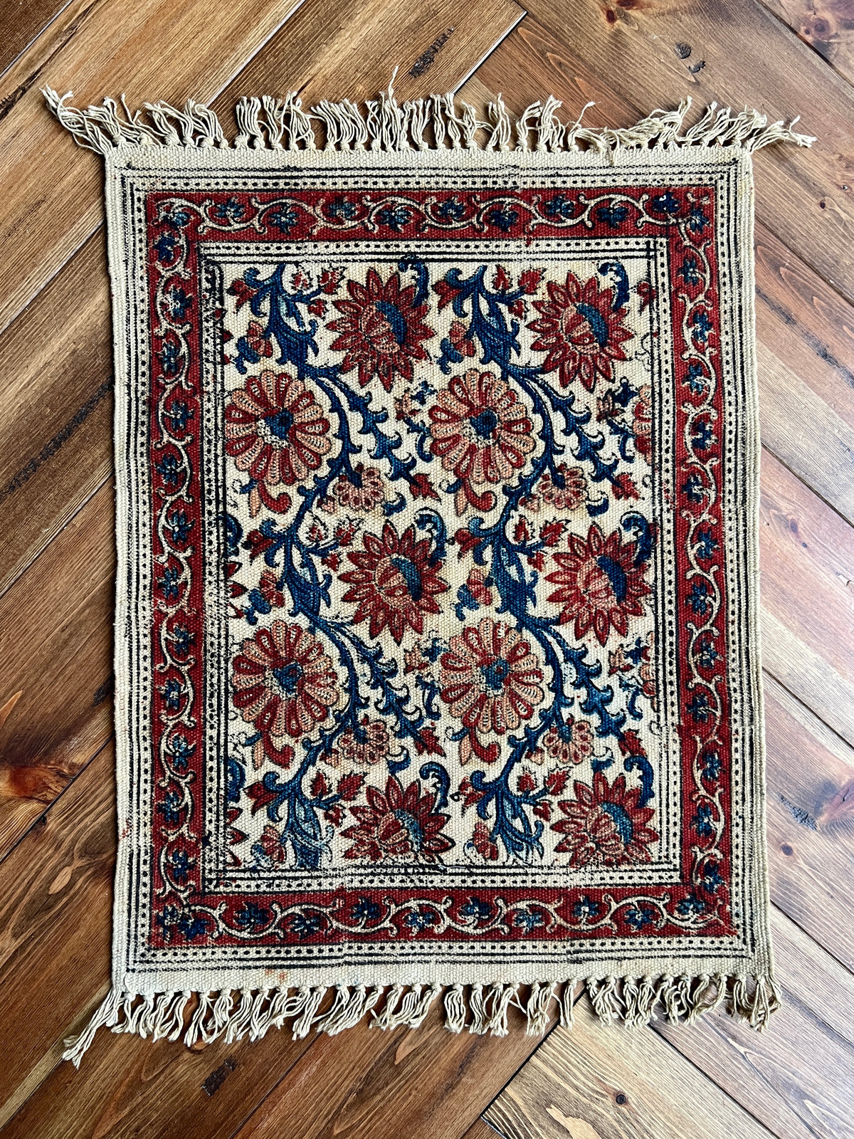 Studio Kahaani brings you a curated collection of rugs, sourced directly from artisans in southern India. These sustainable pieces are hand-woven from pure cotton, then block printed using traditional Kalamkari techniques and non-toxic vegetable dyes.